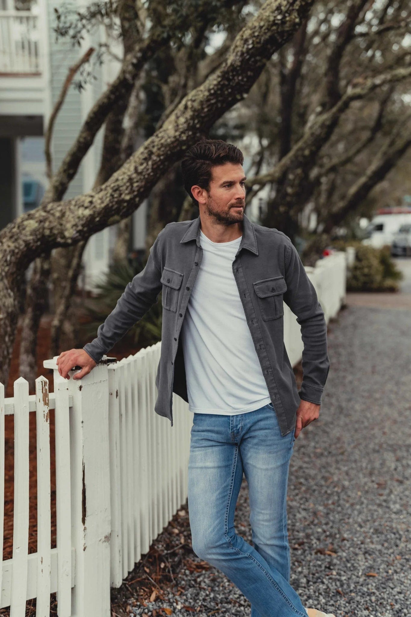 Sweats and chinos had a baby, and it’s called Comfort Terry. This fabric is smooth and polished on the outside, plush and comfy on the inside. Nobody needs to know you’re wearing something that’s as comfortable as your favorite hoodie. Layer this Comfort Terry Shirt Jacket with a tee or henley underneath, or on its own with your favorite pair of jeans.