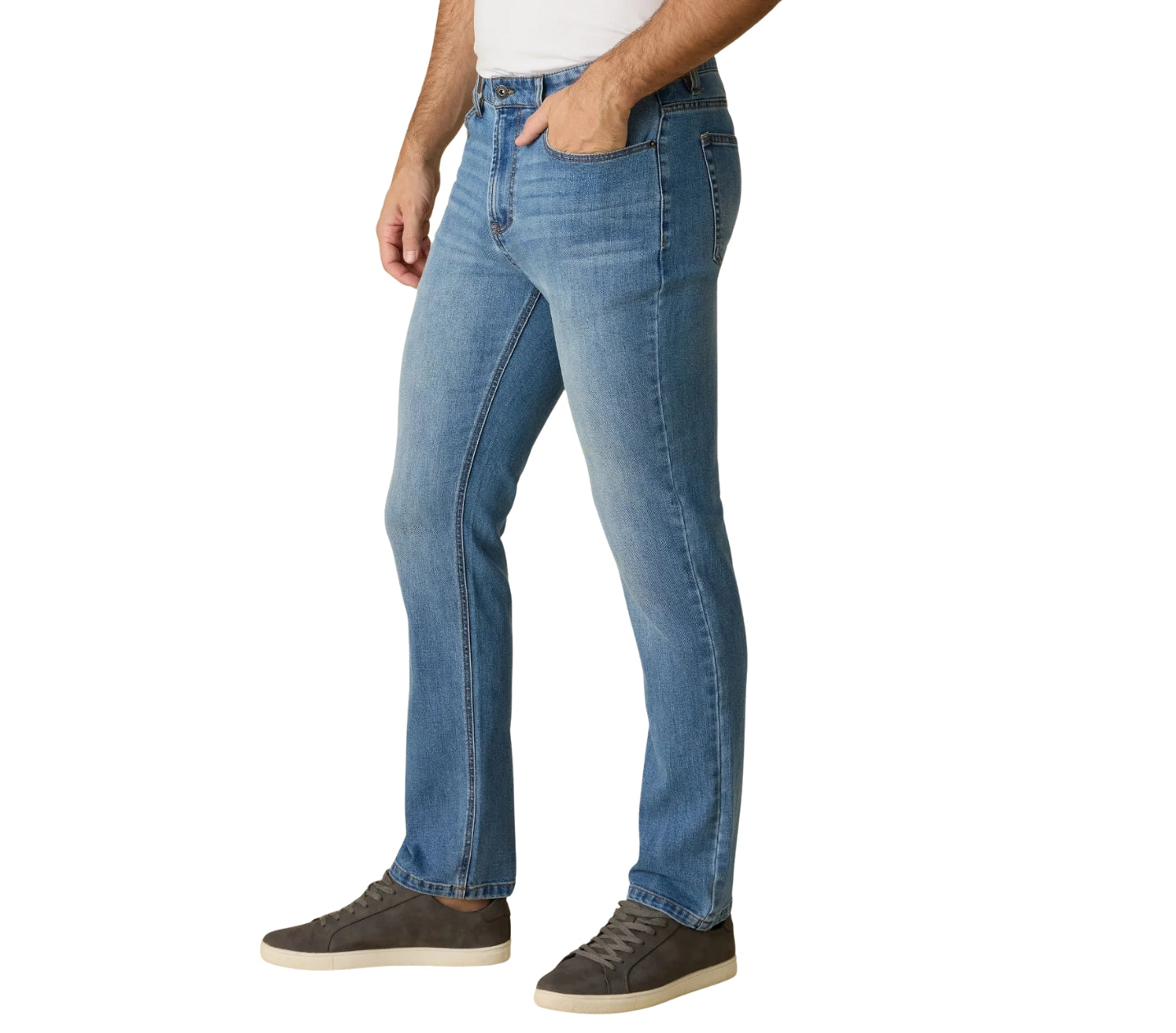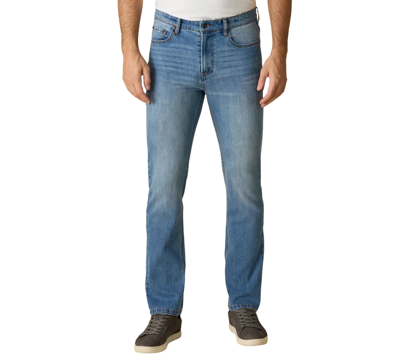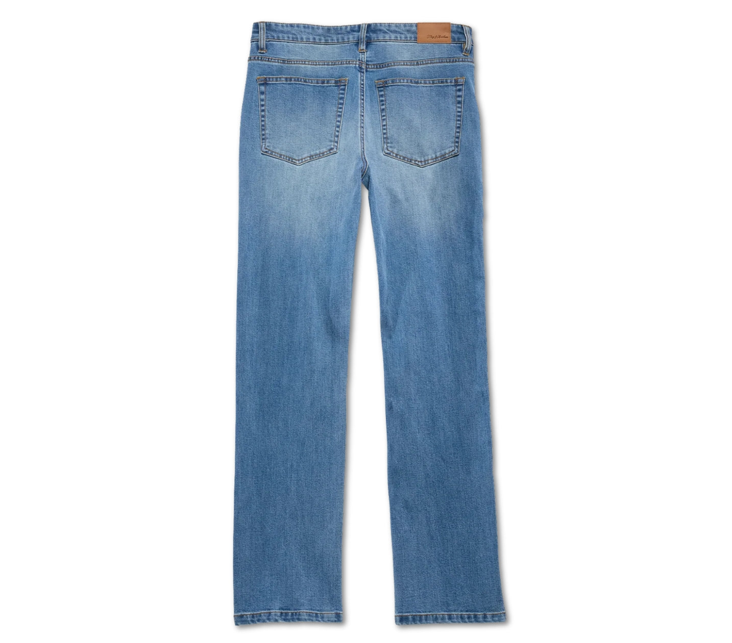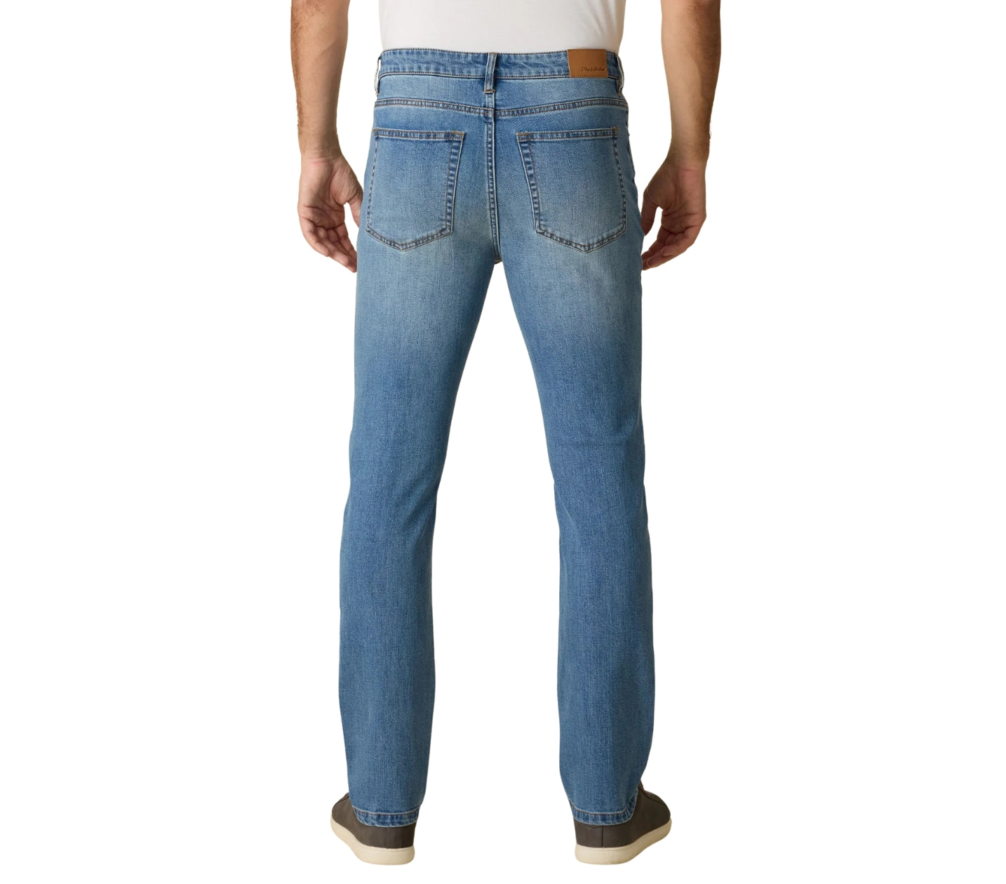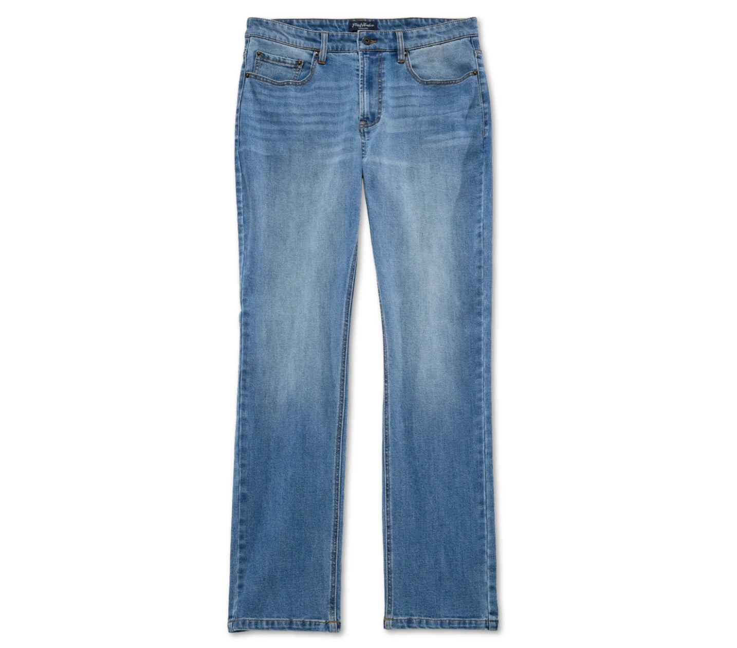 Fontana Straight Leg Denim - comfortable, breathable, and lightweight with extra stretch into the fabric. Regular rise; traditional 5-pocket styling. Zip-fly front with logo button closure. Light wash. Not too skinny, not too wide.