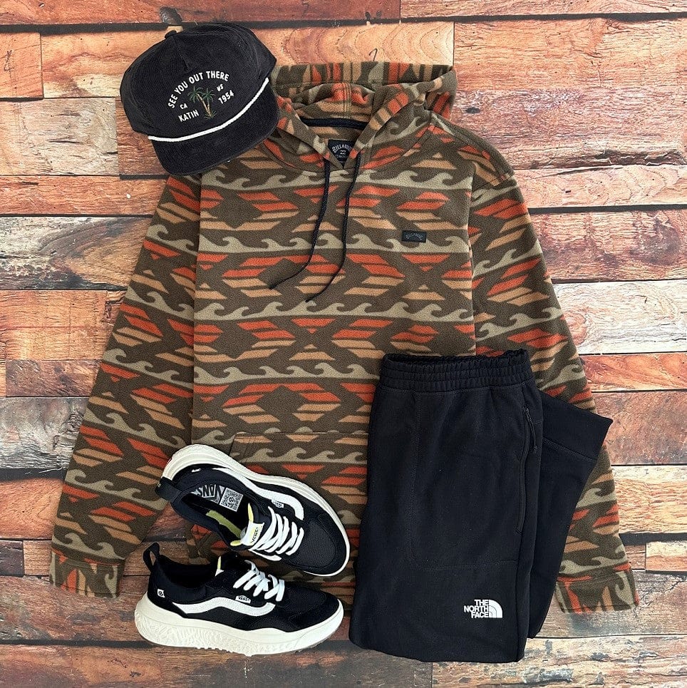 Warmth and style come together in the Furnace Fleece from Billabong's Adventure Division. Featuring a bold print with a cozy fleece feel, this eco-conscious pullover features a hooded neck, a kangaroo pouch pocket, and Adventure Division branding.