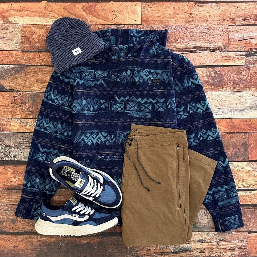 Warmth and style come together in the Furnace Fleece from Billabong's Adventure Division. Featuring a bold print with a cozy fleece feel, this eco-conscious pullover features a hooded neck, a kangaroo pouch pocket, and Adventure Division branding.
