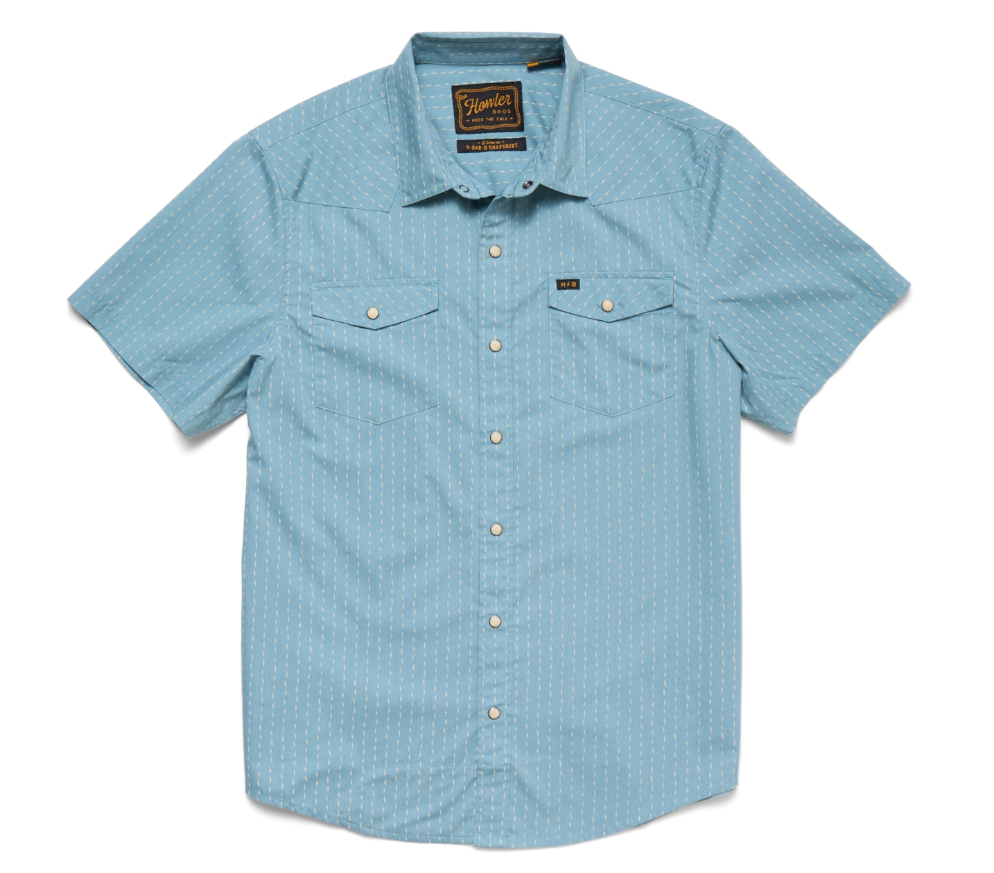 The H Bar B Snap Shirt from Howler Brothers is one of our most popular shirts every summer because of its glorious pearl snaps and timeless good looks. Brand yourself with H Bar B for every occasion from bull riding to laid-back days on the patio.