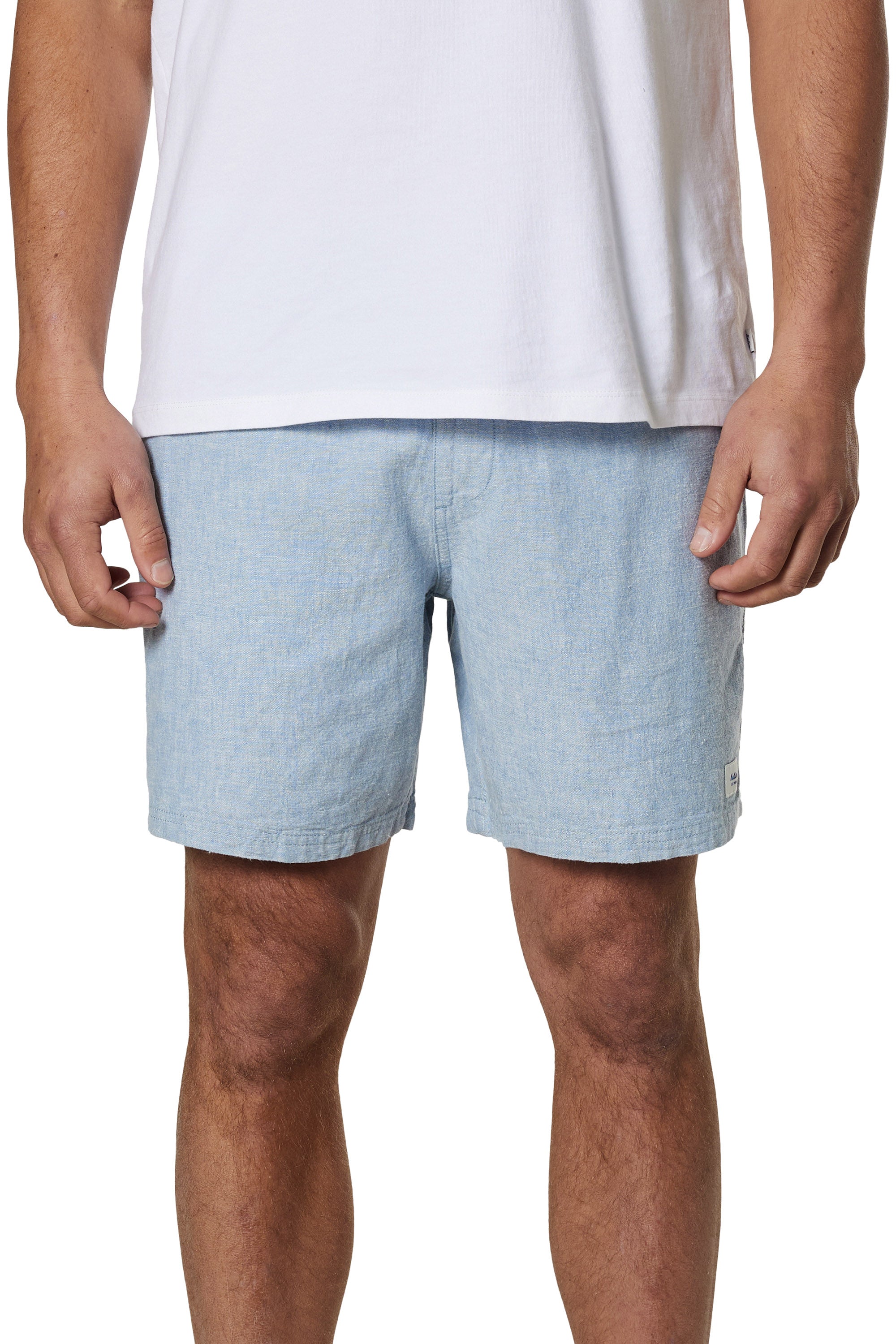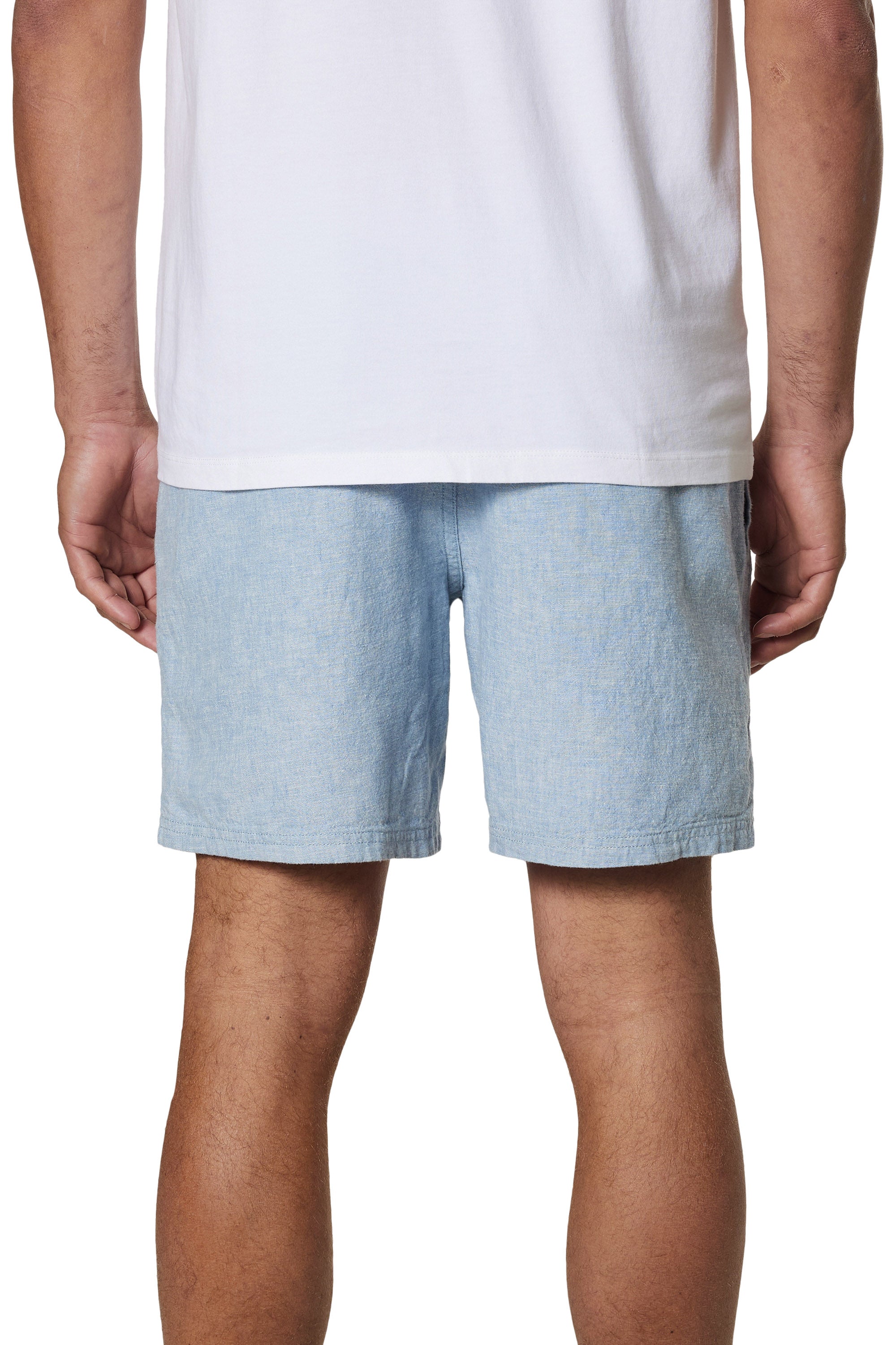 Made from a 75% cotton 25% linen-blend fabric, the Isaiah Local Short is both comfortable and good looking. the Isaiah features front welt side seam pockets, elastic waistband with drawcords, back welt pockets, faux fly and an internal diagonal pinstripe binding.