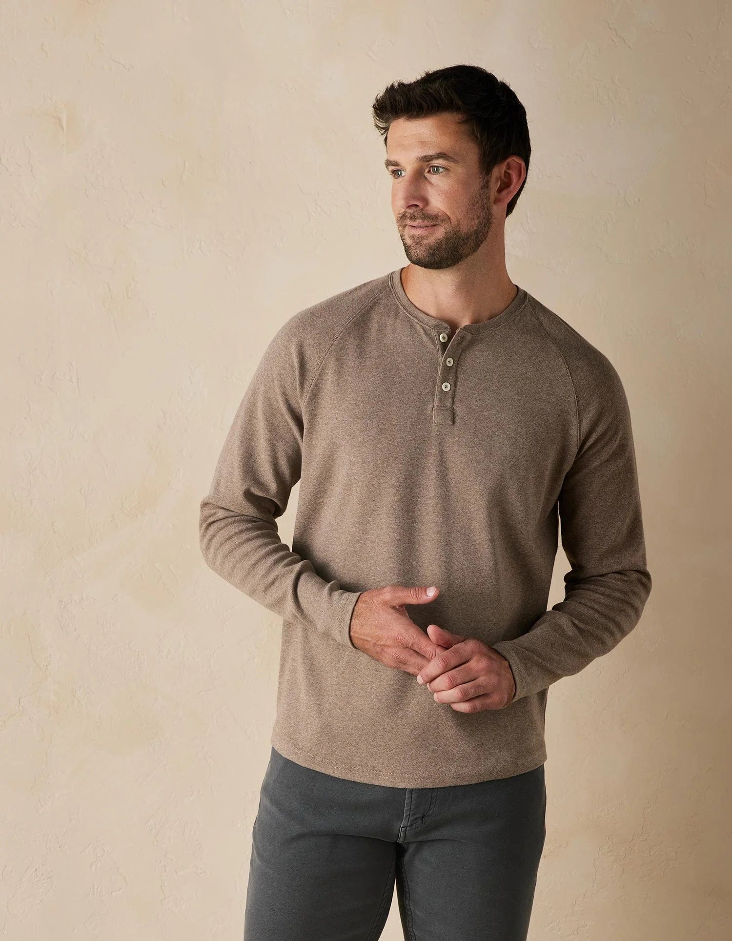 Featuring a stylish curved hem, this lightweight henley offers a fresh take on a classic design. Crafted from a blend of cotton, poly, and spandex, it's not only comfortable but also versatile, making it an ideal midweight base layer for added warmth. Made with meticulous attention to detail, this henley guarantees optimal fit that's true to size, ensuring you stay comfortable while looking sharp.