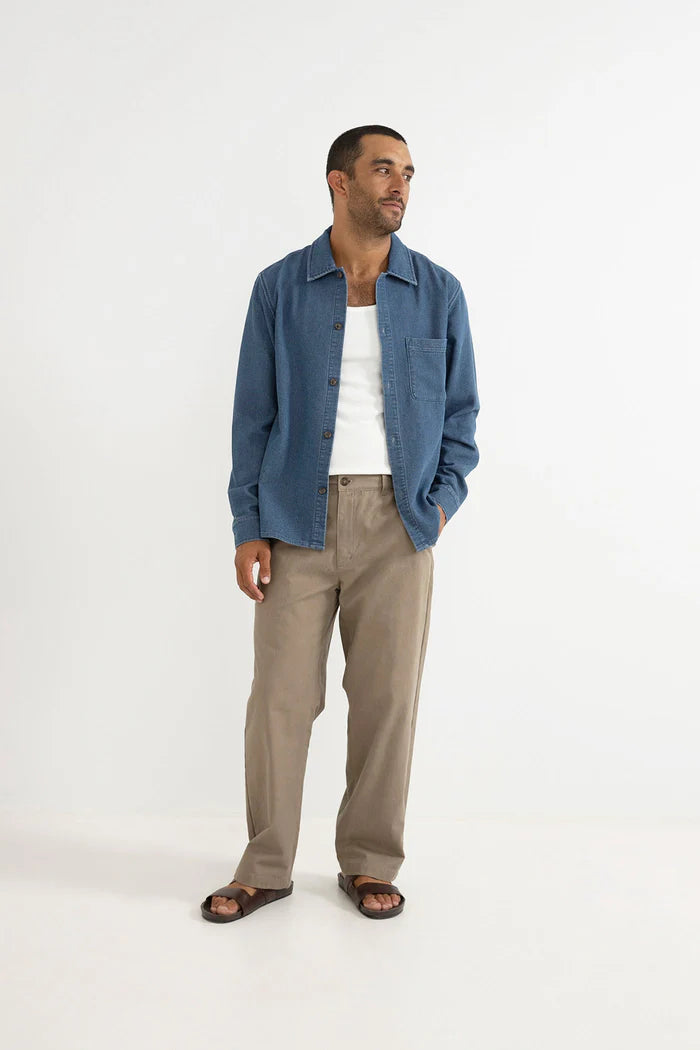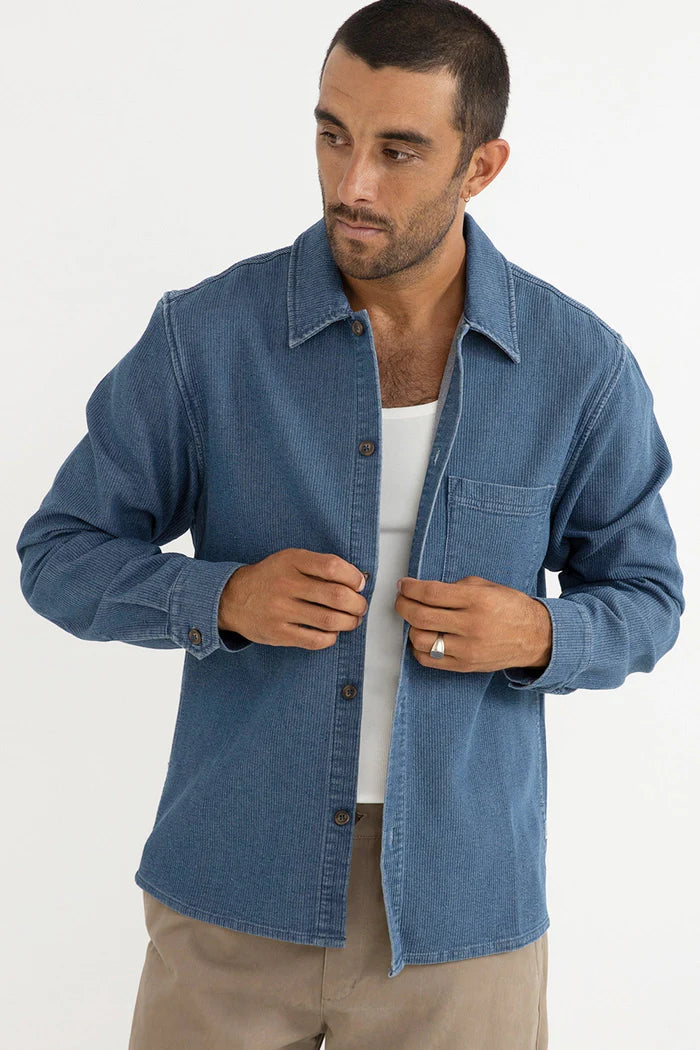 Made from a textured wale fabric with a subtle ribbed effect, the Textured Wale LS Shirt in Washed Indigo delivers a rugged yet refined look. Featuring a one-piece collar, chest patch pocket, and washed finish for a vintage hand feel, this long-sleeve staple is made for laid-back layering.