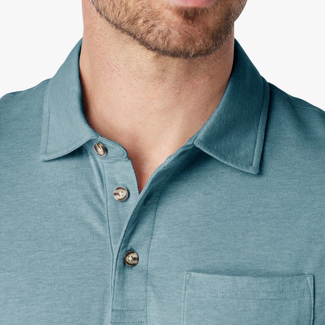 The Kismet Polo is the classic polo shirt reinvented by combining a heritage look with performance characteristics. It has blended organic cotton and recycled polyester together to make an incredibly soft and breathable fabric, with a sun-drenched wash so it looks like it’s been your favorite shirt for years. Featuring a modern and trim cut, it is designed for a casual day on the beach or night out, making it the perfect warm weather style.
